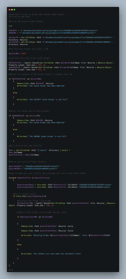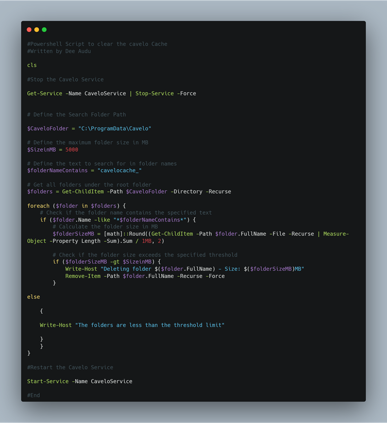 Implemented auto-cleanup using a scheduled script to delete the cache folder at a set file size limit using the Measure-Object cmdlet.